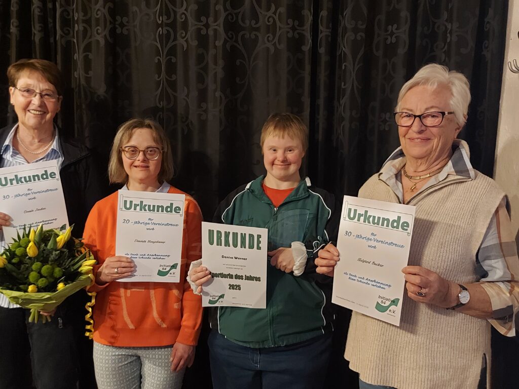 von links nach rechts: Ursula Janßen (30jährige Vereinsmitgliedschaft), Daniela Neugebauer (20jährige Vereinsmitgliedschaft), Denise Werner (Sportlerin des Jahres 2025) und Helgard Becker (30jährige Vereinsmitgliedschaft)